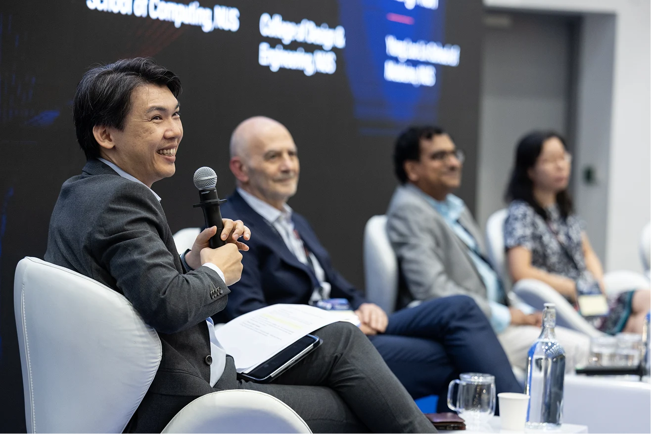 NUS professors-turned-founders opened up about the highs and lows of translating research into successful ventures during the panel “Innovation Unplugged: Founders and Frontiers”, moderated by Associate Professor Benjamin Tee, Vice President (Innovation and Enterprise), NUS Enterprise (first on left in the photo below)
